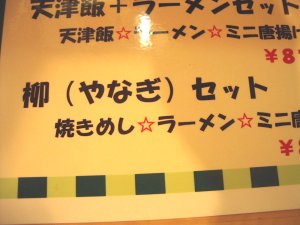 先日、久々に昼食は近くの餃子の王将(京都)に行って来ました。ここ最近はミソラーなど本格中華ばっかりだったので、こういった大衆中華もたまには美味しいものです。 こってりラーメンと餃子を注文してボケーッとメニューを眺めていたら、店長のお薦めセットと銘打った中に気になるモノが、 柳(やなぎ)セット なんで「焼きめし+ラーメン+ミニ唐揚げ」のセットが『やなぎセット」になるんだ? 。。。と、すごく謎に思われる方も多いことだろう。 でも実はこれ、餃子の王将をこよなく愛する者ならば理解することの出来る『王将語』なのである。 「柳」とは「ラーメン(柳麺)」の柳の字をとって店員の間で取り交わされるメニューの省略語で、読みは和風に「ヤナギ」と読む。 他に「餃子1人前」は「イーガーコーテル(コーテルイー)」と読み、「焼飯」は「ソーハン」、「天津飯」は「テンハン」、「中華丼」は「ナカドン」、「ほうれん草と卵の炒め物」は「ポパイ」、「皿うどん」は「バリ」、そして「餃子2人前持ち帰り」が「コーテルリャンナーホー」等々、王将を通い詰めた者ならば聞いただけで何が注文されたのかすぐに理解できる便利な言語なのだ。 しかし、この王将語は店員間のみの言語であり、我々が店員に「柳一つ下さい」と言っても、 「ハァ?」 と言われるのがオチなのに、これが堂々とメニューとして登場しているというのは個人的にはすごく興味深い。 王将語は日本中を席巻してくれるだろうか? これからもあたたかく見守っていきたい。 | |