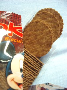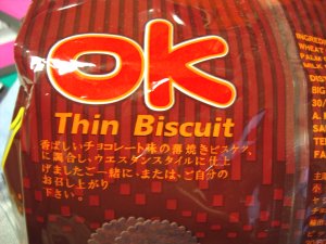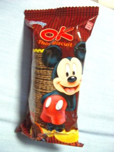 今回はCOCOさんご提供の怪しきモノを紹介します。(いつもありがとう、COCOさん) 先日、シンガポールへ帰省されていたCOCOさんは、市内中心部・インド人街の有名総合ショッピングモールであるムスタファセンターでこんな素敵なモノを見つけてこられ、オミヤゲだよ、と送ってこられました。 一見すると、お菓子のようであるが、なんだか怪しい、というのも、パッケージに Disney すもう OK Thin Bisket しかも、下部にはミッキーマウスのような、裏面はディズニーのキャラたちのような絵があちこちに描かれているではないか。 私には「すもう」と「ディズニー」との関連性がまったくわかりません! これはシンガポール製ではないな、とよく見ると、やっぱり「怪しき王国・タイランド」製品だった(笑)。。。。ということは怪しい日本語も、と思ったら、 香ばしいチョコレート味の薄焼きビスケツ、に調合し、ウエスタンスタイルに仕上げましたご一緒に、または、ご自分のお召し上がり下さい。 すもうブランド薄焼きビスケット “チョコレート味” うーん、読めるような読めないような、びみょー。。。で、ミッキーマウスが「すもうブランド」だったとは意外な発見ではある(笑)。 とうとうシンガポールにまで進出したか、タイ製品。 怪しい日本語を今後も世界にまき続けてくれよ! | |