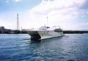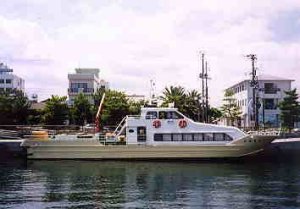 大黒湯正面 玄関先で主人がのんびりと涼んでいる姿をまだ見れるのだろうか。。。 足:洲本港もしくは土生港から沼島汽船にのり船着き場到着、郵便局裏の路地を歩くとあり。 この船が洲本・土生〜沼島を結ぶ沼島汽船の「しまちどり号」。洲本便は1日1便しかなく不便、土生便は約1時間に1便と便数が多いものの、土生汽船場前から洲本や福良方面に向かう(その逆も)淡路交通バスの本数がかなり少ないので注意。 車の場合は土生港に駐車場がある。 平成15年7月、沼島に新しいフェリー港か完成したようだ。 沼島汽船:0799−57−0008 最新の船の時刻表はこちら バスについては淡路交通HPで確認を。 ちょっと前まで沼島汽船の洲本発の便に合わせて大阪・深日港からも洲本へ船が出ていたが、現在は廃止されている。これがその南海淡路ラインの「とらいでんと号」で、何かの賞を受賞した名船であったが航路廃止後の消息は不明。 大阪から沼島へはこの船を使うと便利だっただけに残念である。 |