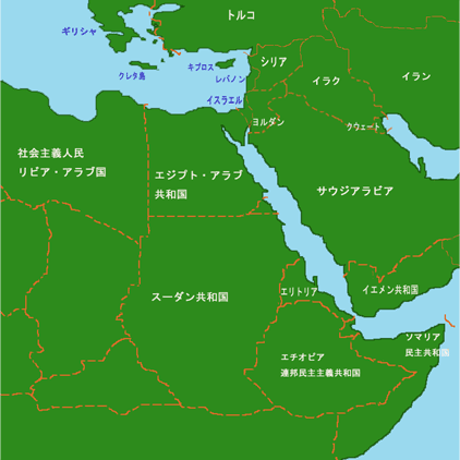 オレンジ色の国境は現在のもので、あくまで目安です。古代世界には明確な国境はなく、現在とは国の概念も異なります。