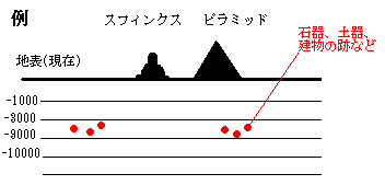 スフィンクスが一万年前に作られたのではない、という考古学上の証拠として、周辺の一万年前の地層から、人間の大規模な活動の証拠が出てこない、ということがある。管理人、考古学は素人さんなので説明の仕方はテケトーですが、簡単に言うとこんなかんじ。