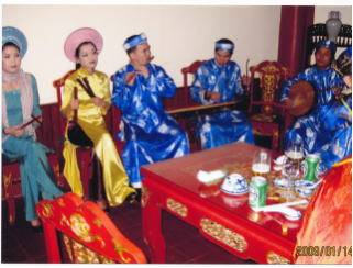 楽師さんたちに「自由ベトナム行進曲」を弾けますかとたずねたら、「OK」ということで、図らずもここでも歌うことになりました。 |
