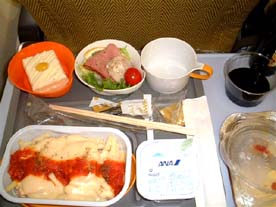 行きの機内食は ほんと 情けないほど簡単なものでした