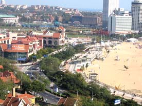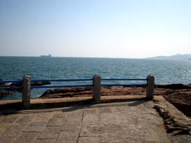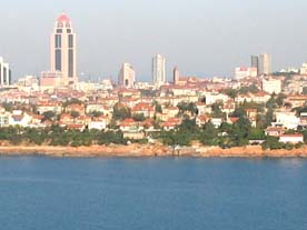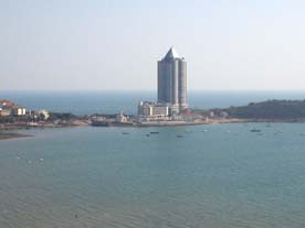 右の方にはテレビ塔 ホテルから遊歩道が海沿いに続き