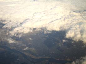 左の写真は 向こうを飛んでる 飛行機です