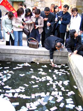 お金を水に浮かべて願い事!