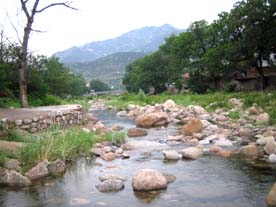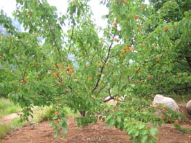 両側は杏の木がたくさん植えられています