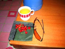 外で少し桜桃を取ってきてから