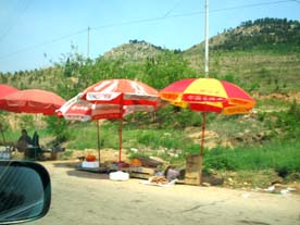 だんだん 桜桃を売ってるパラソルが増えてきました