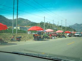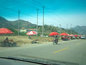 道端には ずっと桜桃売りが続いています