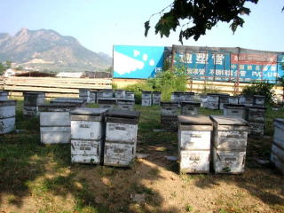 帰る途中 養蜂のテントと箱を見かけたんで