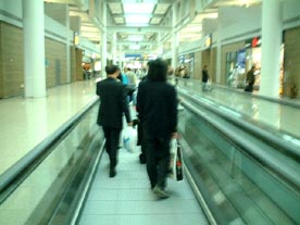 と 手には免税店で買ったおみやげ袋が2つ