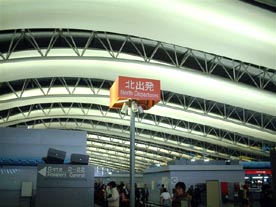 中間駅で降りて 搭乗口に向かいます