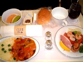 機内では 食事の準備 またもや洋食か和食か聞いてきました