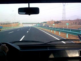 市内からは高速に乗り烟台・流亭1`の標示のあと 出口の標示。