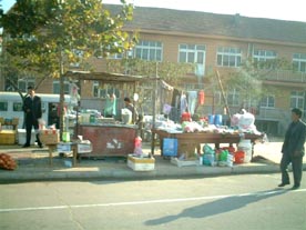 左は 日本では珍しいロータリー 右は路上の野菜売りのおばちゃん達