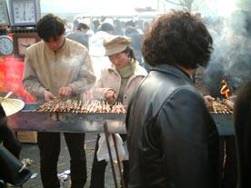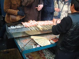 どこの民族でしょうか? 羊肉の串焼きを売ってます