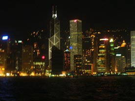夜景を海上から見ながら 香港島を後にし 九龍へ 戻ってきました