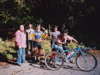 | 8:41発快速急行に乗車し出発を待っているとギリギリで後藤が乗車してきた。彼は車内で朝食を済ませる。ボックス席なので人目は気にならない。1時間チョットで集合場所である正丸駅に到着。改札を出ると名倉の車が既に待機していた(時間通りに来てるなんてめずらしい!)のでひと安心。しかし、その他に自転車は見あたらないので我々2人は自転車を組む気力が全くない。駅前の売店で土産を買っているとレーサーに乗った菅家が登場。彼はあたりを見回し不安げな表情。彼曰く。「誰も居ないので騙されたかと思った!」その後菊池氏もマウンテンに跨り家から自走。これで自転車組は4人となり、私と後藤は諦め自転車を組む羽目となる。その後しばらく時間が経過しても誰も現れないので渋々走り始める。正丸トンネル手前を右に折れ正丸峠の分岐と別れ刈場坂峠へ。穏やかな小春日和。日向で休憩していると単独のサイクリストがスタンドの付いたマウンテンで登場。予期せぬ小田島も合流。彼は日帰りで参加との事。これでようやく5人。虚空蔵峠で昼食。そして刈場坂峠へ。当初のルートを一部変更して宿へと下る。少しダートの残るコースだがチューブラーの菅家も無事にクリア。宿へは3時過ぎに到着したが、未だ誰も来ていない様子。部屋に入りお茶を飲みながら一息入れていると鉄道少年大塚君登場。秩父鉄道のSLに乗ってきたそうだ。小田島を見送り、風呂に入る。他の者は宴会の買い出しへ。その後飯沼、目黒氏も合流。6時夕食。食堂へと移動。杉山から連絡が入りこれから宿に向かうとのこと。料理もたいらげ酒を飲んでいると、ようやく杉山登場。ひとり寂しくもくもくと食べている。杉山が食べ終わると客室へ戻り2次会。夜中12時半、名倉を見送る。1人、2人と床へつく。最後は何時に寝たか記憶にない。 |