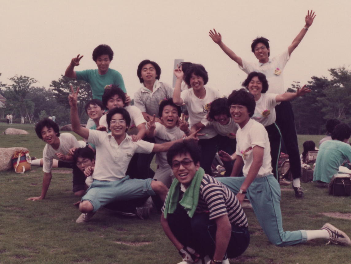 1982年のオール日大。森林公園にて。いいっちぇ!甲斐田氏がウン*すわり