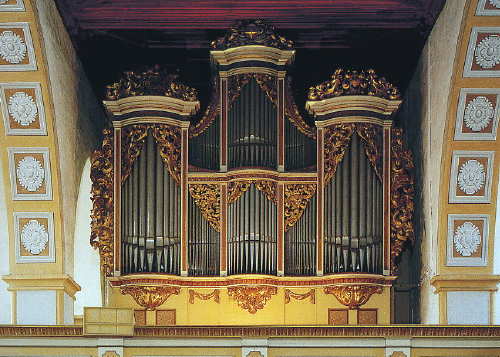 II.Oberwerk C,D-c''' Principal 4' Gedackt 8' Quintadena 8' Rohrfloete 4' Nassat 3' Octava 2' Tertia 1 3/5' Quinta 1 1/2' Sifflet 1' Mixtur III |