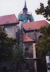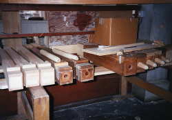 修復中のヒルデブラント作のオルガンを説明するEuleのビルダーとフォーゲル氏、鈴木雅明氏。手前背中はこの日から合流したビルダーの横田氏