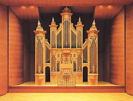 | Pedal C-f' Soubasse 16' Principal 16' Quinte 10 2/3' Octave 8' Bourdon 8' Octave 4' Flute 2' Mixture V Buzene 16' Trompette 8' Trompette 4' Cornet 2' |
