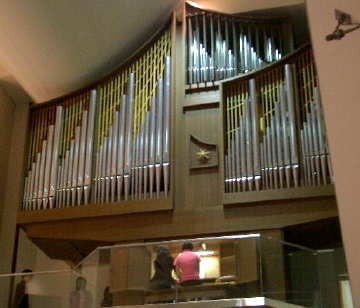 II.Schwellwerk C-g''' Gedackt 8' Gamba 8' Voix celeste 8' (ab c) Weitprincipal 4' Koppelflote 4' Nasard 2 2/3' Blockflote 2' Terz 1 3/5' Scharff IV Oboe 8' Tremulant |