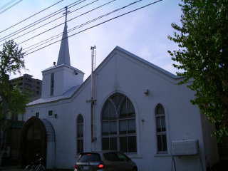 札幌バプテスト教会。 マナの新しいオルガンがある筈だが、 日曜なのに玄関は閉まっている。 東京に帰ってから判明したのだが、新しい会堂が近くに建設されていた。 う〜残念! |