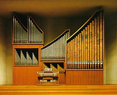 | I. Positiv C-c'''' Rohrgedackt 8' Quintade 8' Praestant 4' Blockflote 4' Nasard 2 2/3' Flachflote 2' Terz 1 3/5' Octavchen 1' Scharff IV Krummhorn 8' Tremolo |
