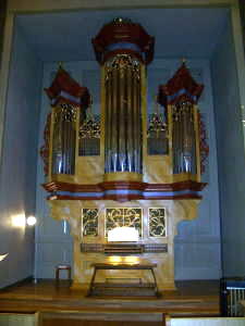 II.Brustwerk Gedackt 8' Kleinfloete 4' Nasat 3' Waldfloete 2' Terz 1 3/5' Quintlein 1 1/2' Dulcian 8' Tremulant |