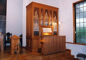 II.Manual C-g''' Gedeckt 8' Floete 4' Prinzipal 2' Oboe 8' (in Small Swell-box) | Pedal C-f' Subbass 16' Bassfloete 8' Tremolo Mechanical action II-IBass,II-IDiskant I-P,II-P |