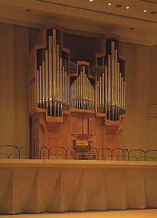 | バスで姫路駅へ一旦戻り、帰りの事も考えて駅からの徒歩での所要時間を計る。駅前の大手前通りを足早に歩く。通りに面したビルのショーケース内には1軒毎にストリートギャラリー、ステンドアートと銘打ったステンドグラスの作品が飾られ、車道側にも20mおきに彫刻作品が設置されている。途中、自転車屋を見かけ、もしやと思い「レンタサイクルはありますか?」と尋ねると、駅前通りの地下に観光用無料レンタサイクルがあるとの事。迷わず今来た道を戻りその場所へ。手続きを済ませ颯爽とペダルを漕ぐ。これで姫路城や市内を観光する時間が出来た。姫路市様々である。色々な角度から姫路城の写真を撮り、公園内のベンチに佇み煙草をふかす。 そろそろ行くか。緩やかな坂を少し登ると目的のホールに辿り着く。パルナソスホール。(姫路市立姫路高等学校音楽ホール)ヴァイオリンを形どったユニークな外観、ホワイエの壁面には立花江津子氏による21枚のステンドグラス、そして須藤オルガン。とても公立高校の物とは思えない豪華かつ贅沢な施設である。大切なレンタサイクルを駐輪場へデポしホールへと入る。事前にメールで当ホール専属オルガニストの小榑由布子さんにアポを取っておいたので受付に申し出て事務所へと案内して貰う。早速オルガンのパンフレット等を頂戴し、ピアニストの吉田裕文さんと面会。演奏終了後にオルガンを見学させてくれるとの事。今日の演奏者、舩木真理子さんは既にステージ衣裳を纏っていた。舩木さんのお顔は第3回武蔵野国際オルガンコンクールのプログラムで拝見済みである。が写真より若く見える。 さていよいよホール内へ。ステージ奥バルコニー部に毅然と聳え立つオルガン。コンソール上部に4枚の扉が付いたブルストヴェルク、その上部にハウプトヴェルク、その上部に水平トランペットが突き出ており、その奥にシュヴェルヴェルク、左右にはペダルのパイプが林立している。オルガンケースはどことなく中新田バッハホールに似ている様な気がする。 今日は「パルナソス朝のハーモニー」と題する無料の演奏会だが、ちと足代が高くつきすぎた。その分、元は取る覚悟で臨んでいる。演奏者のプロフィールを見ると「井上圭子氏に師事」と書いてある。よし!舩木さんとの会話のつかみはこれでOKだ!演奏はクラークのトランペットヴォランタリーで華やかに始まる。力強いリード管がホールを駆けめぐる。バッハのBWV564トッカータのペダルパートでは高音部分でややリード管が強調されすぎた気がするが・・残響は約2秒くらいだろうか?充実した響きである。 約1時間の演奏は曲解説等を交えあっと言う間に経過してしまった。演奏終了後、事務所へ立ち寄り吉田さんと共にオルガン見学。アシスタントの女性が「オルガンはまだスタンバイ状態です」と言い、吉田さんは「どうぞ演奏なさって下さい」と言って下さったが堅く辞退しました。(だって弾けないもん!)鍵盤を押し各ストップの音色を聴き比べたり、裏側の梯子を昇りメカニズムやペダルのパイプ群を覗き込む。無造作に置き去りにされたリード?2枚が目を引く。 再び事務所に戻り、今度は井上さんをダシに舩木真理子さんと会話を交わす。彼女、実は武蔵野のコンクールには出場していなかったとの事。トリフォニーにも行ったことがある・・などなどこれから私が宝塚へ行くことを小榑さん経由で耳にしていたらしく「私、実家が宝塚ですからご案内しますよ」と誘われグラッときたが幸か不幸かレンタサイクルで来ていた事を思い出し、泣く泣く断り、猛ダッシュで姫路駅へとペダルを漕いだ。あと20分。12:27分発に乗らなければ・・・ つづく