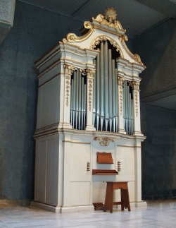 | 人影まばらな明け方の奈良駅。駅員に関ヶ原付近の状況を尋ねるが「さぁ〜走ってるんじゃないの?」と不安な返答。京都で在来の米原行きへ乗り換える。安土を過ぎた頃から雪化粧に変わり米原駅に降りたときはホームには結構雪が積もっていた。ここからが難所なのに・・・案の定、関ヶ原付近では徐行運転に。「おいおい、頼むからこんな所で立ち往生しないでくれよ」と心の中で呟く。 定刻よりかなり遅れはしたが無事岐阜に到着。バスで一路岐阜県美術館へ。足下が雪で歩きにくいが、美術館の敷地内に入ると通路は人幅に除雪してあり歩きやすい。が木の枝に積もった雪がドサッと上から落ちてくる。館内に入るとそこは別天地。早速、オルガンの所へ歩み寄ると辻さんがウロウロ?としていた。迷わずサインを求める。 演奏まではまだ暫く時間があるので館内をしばし散策。先程から気になっていたのだが、館内から「ピチャッ、ピチャッ、」という音が聞こえる。床をよく見ると水溜まりになっている箇所があちこちに見受けられる。顔を上にやるとどうやら天井から雪解け水が垂れてきているらしい。幸いオルガンの所には垂れていないが・・・ 定刻の11時。辻さんの挨拶。そして御本人の演奏。曲は、ゲラルデスキー、フレスコバルディ、他、古いイギリスのオルガン曲等。このオルガンはイタリアバロックオルガンを複製した物だ。オルガンケースは私でも作れそうな感じ?(失礼!)ペダルは私でも演奏できそうな?音域しかない。 音色は優しく、かわいらしいユーモアある音だ。ペダルの響きは結構重厚に鳴る。しかしやや不鮮明な音だ。私が中学の時に、金がなかったのでステレオの低音を得るために大きな段ボール箱をくり抜きスピーカーを取り付けたことがある。誠に失礼だが、この時の音に似ている様な気がする。演奏は13時にも同じ内容で行われた。昼食を摂り、隣の図書館で暇をつぶした後、無料シャトルバスでサラマンカホールへも足を運ぶ。 今日ここでは鈴木雅明さんのメサイアが演奏されていたのでオルガンは見学できなかったが、テレホンカードを購入して我慢した。再びシャトルバスを利用して西岐阜駅へ連れていってもらう。本当に首都機能がここ東濃に移転するのだろうか?と疑問に思いつつ、夕暮れ迫るホームに一人佇みながら、白い息と煙を交互に吐く。 (1月のオルガン紀行より)