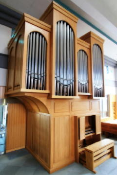 II.Recit expressif C-g''' Salicional 8' Bourdon 8' Voix celeste 8' Flute a cheminee 4' Nazard 2 2/3' Flute de bois 2' Tierce 1 3/5' Cymbale II 1' Tremblant | Pedal C-f' Soubasse 16' Bourdon 8' II-I,I-P,II-P 平均律 |