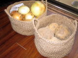 さて私の最新のDIYは。100円ショップで買ったじゃが芋や玉ねぎを入れていた麻布の袋が破けてきたので、買うのは止めて荷作り用の麻紐を編んで作ることにした。細編みで直径20pの円形に編んで増減なしでぐるぐると15pくらいの高さに編んで持ち手を作って完成。一巻き900gの麻紐でこのサイズのものが4つは作れるはず。自然な風合いが台所に合ってなかなかいい感じ。かぎ針がだんだん楽しくなってきて、ついでに白いコットン糸でドイリーも作ってしまった。DIYは仕事の楽しさにも目覚めさせてくれる。