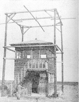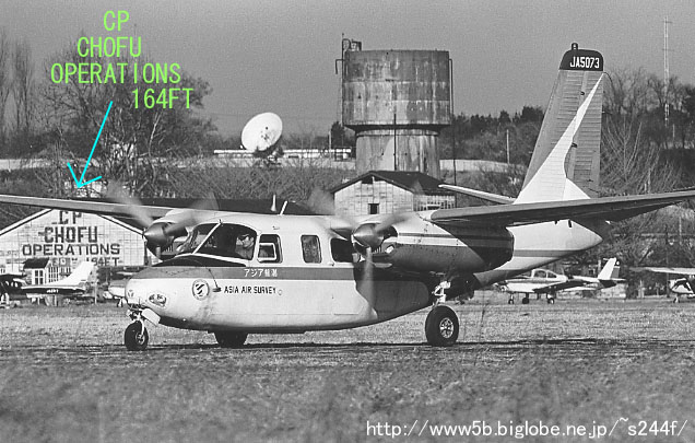 ↑244飛行場大隊兵舎 (昭和50年) 調布飛行場に最後まで残った旧陸軍の兵舎。かつては同様の兵舎が周囲に10数棟 並んでいた。この建物は、飛行場大隊が主に経理等の事務に使っていたらしい。 右端の2階建部分が「地1号方探」 の局舎で、1階に無線室、2階にアドコック型回転式 空中線、屋根上に固定空中線が設置されていた。 無線室と母屋との間は壁で隔てられ、電磁遮蔽のために銅板が埋め込まれていた。釘も 鉄ではなく、竹釘が使われたという。 位置を失った飛行機が「キホウホ=機方位ほしいの意」と発信すると、複数の飛行場の 方探が一斉に発信方位を探り、該当機の正確な位置を割り出した。 この兵舎は、下段写真のように戦後米軍の飛行司令所としても使用された。 |