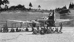 | ↑ 子供たちのよい遊び場になっていた昭和50年頃の射朶跡。 この後間もなく宅地造成されてしまった。 | ↓ 昭和19年夏、出来たばかりの射朶で照準調整 する独飛17中隊の100式司偵3型改防空戦闘機。 同中隊は、調布飛行場西地区に展開していた。 |