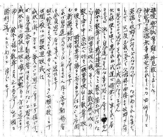 | 新藤仁平軍曹は、自らの事故により地上の母子の命を奪ってしまったことを最期まで 悩み続け、20年8月8日、八日市飛行場上空において板垣軍曹との単機戦闘演習中、 墜落炎上して22歳の生涯を閉じた。 この手紙を書いた当時は、鈴木伍長の後任として戦隊長僚機を務めていた。 |