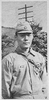 | 確か昭和50年頃だったと思うが、テレビの終戦記念番組で女優の文野朋子が戦時の体験を語っているのを見たことがある。その内容は、おおよそ次のようなものだったと記憶する。 <私は当時大映の大部屋におりました。撮影所の近くに親しくお世話になっていたお宅があり、よく泊めていただきました。 そのお宅に、調布飛行場の部隊の若い将校さんたちが下宿していて、私もその方たちとは顔見知りになっていました。 戦争が激しくなると、その方たちも戦地へ移動するようになりました。出発の前は、口には出しませんがそれとなく分かります。そんなときは、そのお宅の奥様と二人、朝から裏の畑へ出て待っていると、やがて飛行場の方からゴーという爆音が響いてきて次々に戦闘機が飛び立ってゆきます。二人で一生懸命、日の丸の旗を振ると、中には翼を振って応えてくれる人もいました。 それからしばらくして新聞を広げていると、「○○中尉戦死」といった記事が目に止まり「あっ!あの人だわ…」と。戦争中はそんなことが度々ありました> 実は、これは調布町小島分にあった渡辺家でのエピソードであり、戦死した将校とは、当家に出入りしていた小原伝中尉(当時)らを指している。当主渡辺喜三郎は、大手建設会社鹿島組の取締役であった。 渡辺家は夫妻ともに岩手県の生まれ。戦前戦後を通じて多くの若人を邸内に下宿させており、温かくざっくばらんな人柄から、皆に慕われていた。 夫人渡辺キワは、近くの大映多摩川撮影所の女優たちに茶道などを教えていたが、文野朋子もその中の一人だった。文野朋子は戦後、芥川比呂志と共に文学座に入って新劇活動に身を投じたが、これは戦時中に渡辺家を介して芥川と知り合ったことが、きっかけであったといわれる。芥川は当時、244戦隊整備隊本部付少尉であった。 | ![]() 芥川比呂志少尉 |