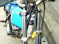 ステアリング部には昔のヘッドライトの配線の残骸が残っている ので、タンクを外した時に処分する予定です。 ここのサビ取りも後日行います。 |