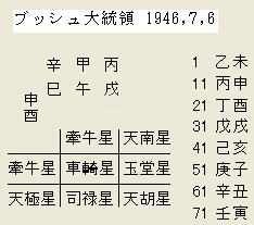 結婚後もアル中気味だったブッシュ氏が、40才の誕生日に禁酒を誓ったことは有名ですが、これは86年丙寅年・牽牛星の出来事です。この年は不調だった石油事業からも撤退しました。牽牛星の年に実に良い決断をしたものです。