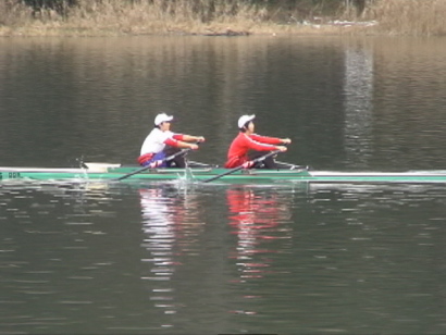 | 全国選抜に出場する2人、2ヶ月ぶりのダブルスカルです。 | |