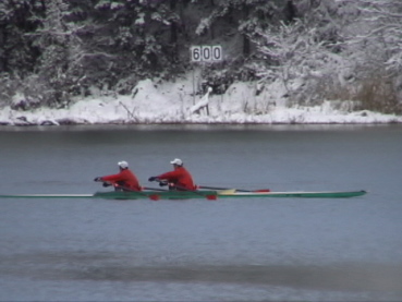| 05年12月11日 | 昨日から雪が降り続いて荻野漕艇場では積雪が25cmに達しました。今日は福島県高体連主催の第2回ロングレースが行われました。田村のクルーも参加しましたが、前回よりタイムは伸びませんでした。恒例の2000m漕も行いましたが、タイムはやはり伸びません。今日はタイムが出ない条件なのかもしれません。 |