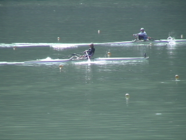| 08年3月22日 | 今日も午前中はほとんど無風の良いコンディションでレースが行われました。男子シングル敗者復活2組は坂出の西原君、田村の泰輔君、八幡工業の遠藤君、江津工業の本山君、柳学園の林君、海洋の青井君の6人の出漕でした。泰輔君はスタートから徐々にリードし、伸び伸びと漕ぎ、長身の泰輔君の良さが出たレースでした。タイムは7分52秒で準決勝進出を決めました。午後から逆風が強くなり厳しいレースになりました。男子シングル準決勝4組は田村の泰輔君、むつ工業の石田君、小松明峰の吉原君、今治西の猪川君の4人の出漕でした。さすがに準決勝ともなると相手が強く、泰輔君はスタートから置いていかれました。逆風による波にもまれているうちにどんどん差が開いてまったく勝負になりません。9分6秒で4位のゴールでした。女子ダブル準決勝3組は湖南、田村、坂出、富士河口湖の4クルーの出漕でした。坂出には予選で完全に負けているし、湖南とは県大会、東北選抜大会を通して1勝1敗でした。スタートから坂出が飛び出し、田村、富士河口湖が続き、湖南は遅れました。田村は昨日の反省から今日はレートを落として1本1本の漕ぎの強さで勝負しました。富士河口湖との差が徐々に開き始め、1000mで田村との間に水が空きました。そのまま2位を確保して8分44秒でゴールしました。坂出には負けましたが、今日は力強い良い漕ぎだったと思います。2位なので明日のB決勝(5〜8位決定戦)に駒を進めました。 |