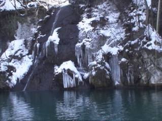 | 上流へ向かうコースの所々に氷柱が下がっています。 | |