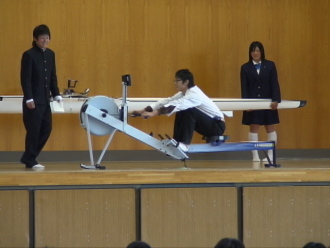 | 07年4月10日 | 新入生に対する部活動の紹介が行われました。ボート部は体育館にシングルスカルとエルゴメーターを持ち込んで、説明しました。今年は何人の新入生が入ってくれるでしょうか。クオドが組めるほど入って欲しいと思っています。 |