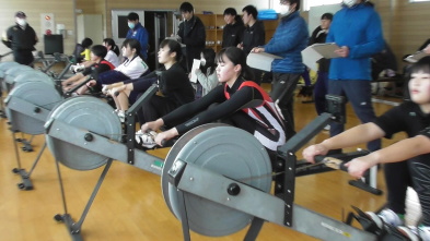 | 他校生とエルゴ2000m漕を競いました。 | |