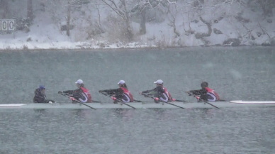 | 21年1月10日 | 全国的に大雪が降る中、今年の初漕ぎを荻野漕艇場で行いました。荻野漕艇場の積雪は約60cmでしたが、コース内は漕げる状況なので久しぶりの水上練習を行いました。風はほとんど吹きませんでしたが、時折激しく雪が降る中での練習でした。 |