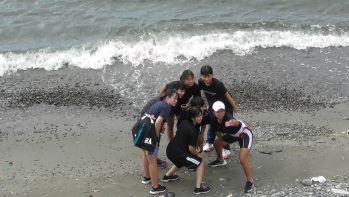 | 宿舎の近くの海で勢揃い | |